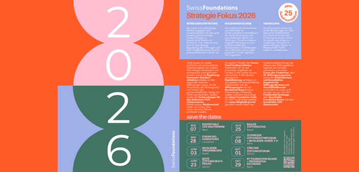 Mit anerkannten Grundsätzen und Methoden ist SwissFoundations die Referenz für Good Governance und zukunftsfähiges Wirken von Stiftungen. SwissFoundations inspiriert Stiftungen zu einer professionellen und transparenten Fördertätigkeit und unterstützt sie mit „best practices“ in ihrer täglichen Stiftungsarbeit.